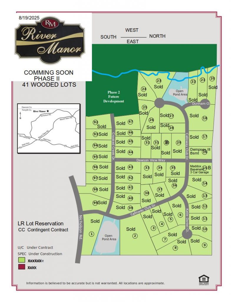 Phase II of River Manor is well underway and will include an additional 41 large and heavily wooded lots ranging from ½ to over 1 acre. Construction of homes is estimated to begin in Fall of 2025 with completion of homes in Spring of 2026.